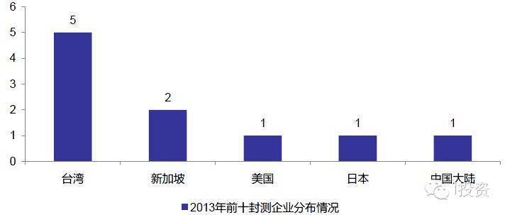 全球前十封测企业中有5 家厂商来自台湾,2 家厂商来自新加坡,美国、日本和中国大陆各1 家。这主要和全球晶圆制造业企业分布紧密相关,台湾有台积电和联电两家晶圆制造大厂,新加坡有GlobalFoundry。从这一方面来看,未来国内封测企业的发展还有赖于晶圆制造环节的进步。