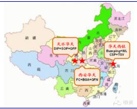 昆山西钛技术先进,是国内第二家拿到Shellcase 授权的公司,2010 年开始实现基于WLCSP 技术的CIS 产品量产,现在已经实现产量1.2 万片/月;独立掌握TSV 技术,并且Copper Pillar Bumping 技术也已经研发完成,预计今年下半年有望实现量产。西安华天将为昆山新增Bumping 产能配套完成后道FC 产能建设,并主要进行BGA、QFN 等中端封装。天水华天地处甘肃天水市,人力能源成本较低,在进行低端产品封装上成本优势显著。