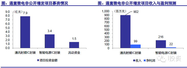 移动智能通讯及射频IC 封测项目是基于FC、BGA 和QFN 等中高端封装技术,达产后产能为9.5 亿块,预计实现年收入和净利润9.02 亿和9855 万元;智能电源IC封装项目是基于PDFN(冲压双列扁平无引线)封装技术,达产后产能为12 亿块,预计实现年收入和净利润2.16 亿和2194 万元。