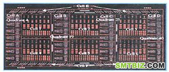 在贴装试验中。最好的贴装发现在象限 4 ,逐渐地在板上向左偏移,很可能是由于在很大的试验载体上伸展的缘故。因此,贴装的最大偏移发生在象限 40 。当使用金属界定的十字型基准点时发生最坏的偏移,在象限 40 的组件几乎跨接焊盘。同时也注意到对于金属界定的圆形基准点比无任哪一种阻焊界定的基准点的偏移更大。