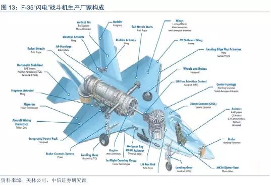 此外,跨领域多方合作也成为美国军工行业的又一发展趋势,参与者不仅包括美国各个军工企业,也包括其他国家的军工厂商。以 F-35 项目为例,主承包商为洛克希德马丁公司,项目涉及美国、加拿大、意大利、挪威、丹麦、荷兰、土耳其、澳大利亚和英国 9 个国家,洛克希德马丁公司将F-35 各个子系统分包给各个企业,协同研制。这种模式能够整合全球顶尖技术和优势资源,通过分摊项目失败风险,从而降低产品成本。