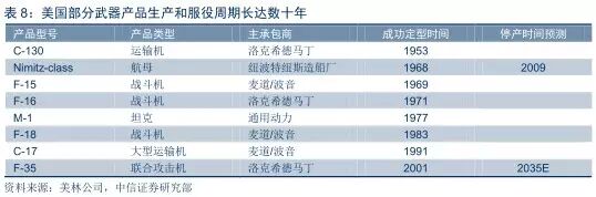 (5)产品周期长。由于研发费用高昂,军工产品的采购量对盈利具有重要影响。通过改型,许多产品的服役和持续采购周期长达数十年,这些产品的盈利能力相对较高。