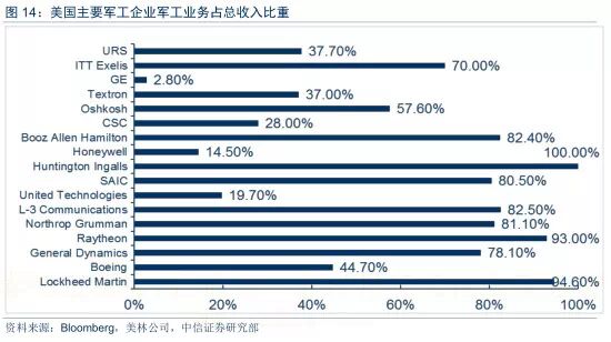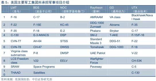 (1)高度集中的下游。美国军工企业的主要客户包括白宫、国会、国防部、军队长官、军事项目管理者、部队装备/后勤项目管理者等。相比于一般商业,军工下游更加强势。军工项目的通过需要各方面批准及利益协调,项目过程中也经常会受到更高级行政长官的干预。因此在选择军工股标的时,投资者会关注相关军事项目,而军事项目背后的主要推动者也会成为投资者的关注对象。