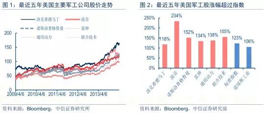 2011 年以来,美国股市随经济复苏大幅上涨,军工股整体表现优于标普指数和道琼斯工业指数,引起全球市场的普遍关注。