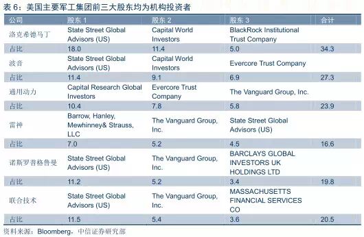 20 世纪 80 年代,美国机构投资者快速发展,美国军工企业的股权开始分散。经过几十年的发展和收购兼并,目前基本已成为由机构投资者持股的公开上市公司。这些大众化公司的由董事会聘请的职业经理人经营。