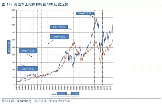 (1)政治事件。如 2001 年 9q11 事件后,投资者预期军费开支的上升,军工表现大幅超越标普 500。