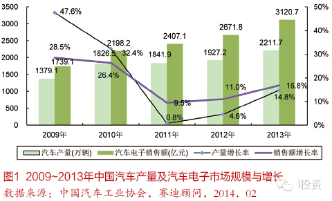 1.1 2013年中国汽车电子市场规模破3000亿元