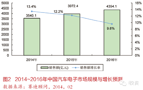 据赛迪顾问基础电子产业研究中心介绍,2013年,随着汽车销量的稳步增长,以及汽车电子装配率的提高,中国汽车电子市场规模加速扩张。根据统计,2013年中国汽车电子市场规模达到3120.7亿元,同比增长16.8%,超过汽车销量的增长规模。