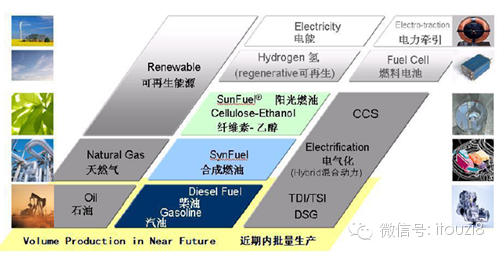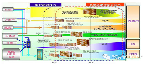 中期重点开发推广纯电动汽车、混合动力汽车或生物燃料等代用能源汽车;远期发展懂点是氢能源燃料方案。